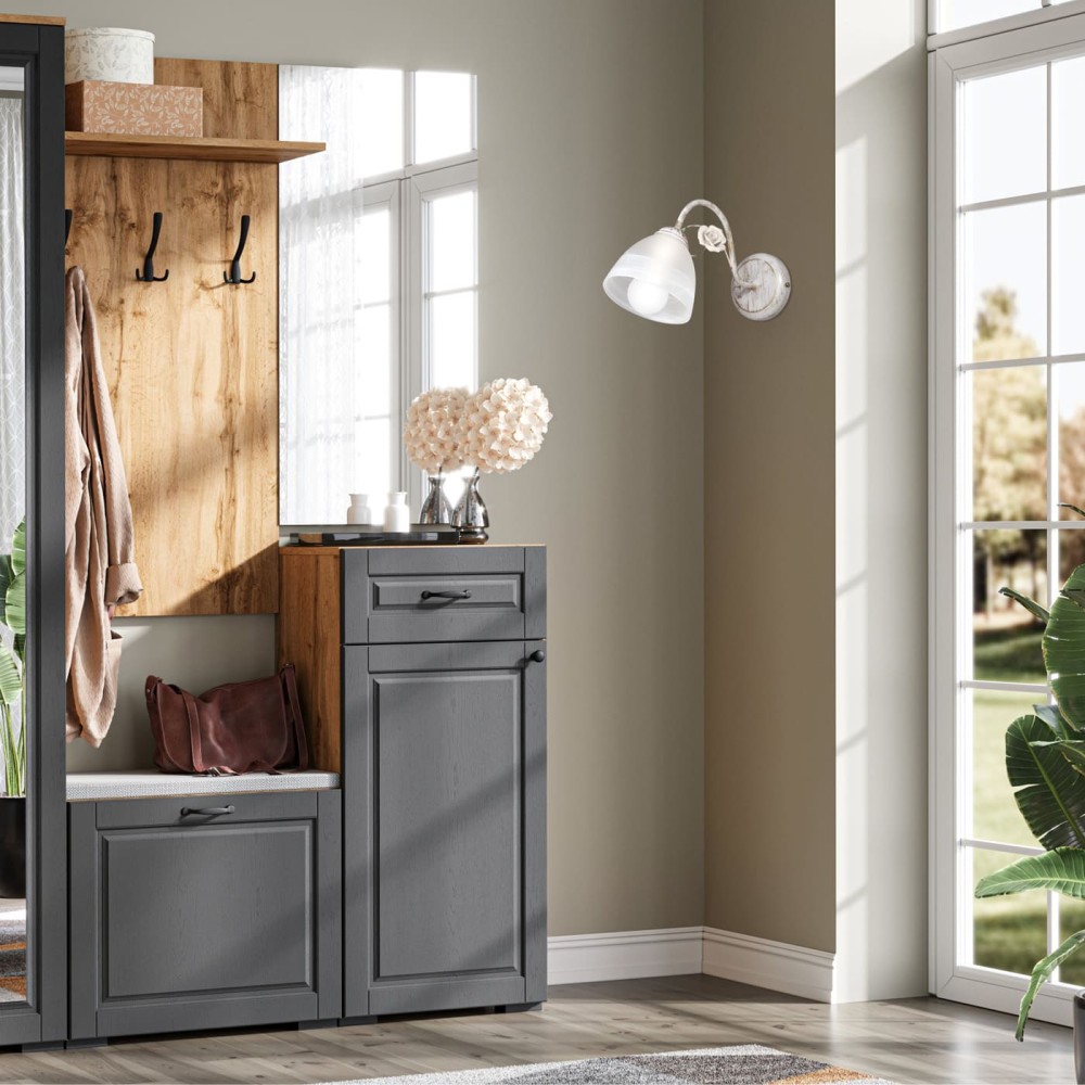 Бра Стеклянный плафон с цветами S2469-1 – элегантное освещение для вашего дома от Петрасвет Этот изысканный бра станет прекрасным дополнением к вашему интерьеру, привнося в него атмосферу уюта, романтики и изысканности. Представленный бра Стеклянный плафон с цветами S2469-1 – это сочетание классического стиля, современного дизайна и декоративных элементов, созданное для тех, кто ценит красоту и качество. Произведенный в России компанией Петрасвет, этот бра отличается надежностью, долговечностью и высоким уровнем исполнения. Основные характеристики и преимущества: Дизайн: Бра Стеклянный плафон с цветами S2469-1 выполнен в стильном флористическом дизайне, что находит свое отражение в деталях декора – белых розах, украшающих плафон. Сочетание классического стиля с современными элементами делает этот бра универсальным и подходящим для различных интерьеров: от классики до модерна. Благодаря своему изящному внешнему виду, он станет ярким акцентом в любом помещении. Материалы: Светильник изготовлен из качественного металла, что обеспечивает его прочность и долговечность. Плафон выполнен из закаленного стекла, которое придает ему элегантный внешний вид и отличные светоотражающие свойства. Металлическое основание обеспечивает надежное крепление к стене. Цвет: Бра имеет элегантный белый цвет с патиной золота, который придает ему благородный и утонченный вид. Патинирование создает эффект состаренности, добавляя бра шарма и индивидуальности. Тип цоколя: Бра оснащено стандартным цоколем Е27, что позволяет использовать широкий спектр ламп различного типа. Тип лампы: Бра совместим с различными типами ламп: накаливания, светодиодными и люминисцентными. Использование светодиодных ламп позволит значительно снизить энергопотребление и увеличить срок службы светильника. Размеры: Ширина: 12 см Высота: 18 см Размер коробки (H x L x W): 14 x 14 x 27 см Световой поток: 1350 люмен – обеспечивает достаточное освещение для небольших помещений. Площадь освещения: 5 квадратных метров – оптимально подходит для освещения спальни, гостиной, прихожей или ванной комнаты. Направление рассеивателя: Рассеиватель направлен вниз, что позволяет эффективно освещать зону под светильником, создавая уютную и комфортную атмосферу. Тип монтажа: Настенный – обеспечивает удобную установку и позволяет сэкономить место на стене. Гарантия: 7 лет – подтверждает надежность и качество продукции Петрасвет. Комплектация: В комплекте с бра поставляется паспорт, что облегчает его установку и эксплуатацию. Преимущества выбора бра Стеклянный плафон с цветами S2469-1 от Петрасвет: Качество материалов и изготовления: Использование высококачественных материалов и тщательная сборка гарантируют долгий срок службы светильника. Эстетичный дизайн: Сочетание классических и современных элементов делает этот бра стильным и универсальным. Декоративные белые розы добавляют элегантности и шарма. Универсальность: Совместимость с различными типами ламп позволяет выбрать оптимальный вариант освещения. Простота установки: Настенный тип монтажа обеспечивает удобную и быструю установку. Надежность: Гарантия 7 лет подтверждает надежность и долговечность продукции Петрасвет. Экономичность: Использование светодиодных ламп (при выборе соответствующего типа) позволит снизить энергопотребление
