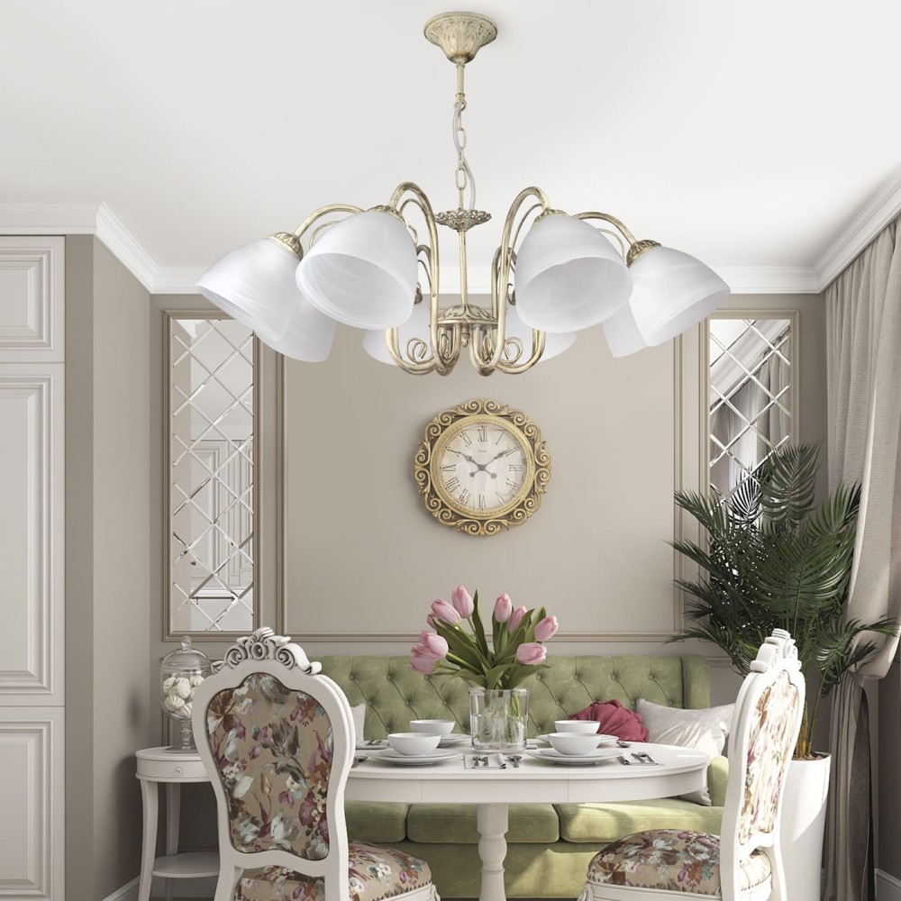 Люстра подвесная 8 плафонов S2499-8 – Изысканный Классический Декор для Вашего Интерьера Эта роскошная подвесная люстра – идеальное решение для создания атмосферы уюта, элегантности и тепла в вашем доме. Представленная модель S2499-8 от бренда Петрасвет, произведенная в России, сочетает в себе традиционные элементы классического стиля с современными технологиями и высоким качеством исполнения. Она станет настоящим украшением гостиной, столовой, спальни или, возможно, даже офиса. Превосходное Освещение и Стильный Дизайн Люстра S2499-8 – это не просто источник света, это элемент декора, способный преобразить любое помещение. Ее 8 плафонов, выполненных из матового стекла, создают мягкое, рассеянное освещение, которое идеально подходит для расслабляющей атмосферы или торжественного приема. Матовая поверхность плафонов не бликует, а их расположение обеспечивает равномерное распределение света по всей комнате. Основные характеристики и преимущества: Производитель: Петрасвет – российская компания, зарекомендовавшая себя как надежный поставщик качественного светильника. Выбор отечественного производителя гарантирует высокое качество материалов и сборки, а также быструю доставку. Стиль: Люстра сочетает в себе элементы классики, неоклассики и прованса, что делает ее универсальной и подходящей для различных интерьерных решений. Ее благородный внешний вид и изысканные детали подчеркнут статус и вкус владельца. Материалы: Светильник выполнен из прочного и долговечного металла, покрытого патиной золота. Это придает ему благородный и винтажный вид, а также защищает от коррозии. Плафоны изготовлены из матового стекла, которое обеспечивает мягкое и рассеянное освещение. Размеры: Ширина светильника – 70 см, высота – 62 см. Размер коробки – 30x32x31 см. Ширина основания – 12 см. Эти размеры позволяют люстре гармонично вписаться в большинство интерьеров. Тип монтажа: Подвесной. Для установки необходимо надежное крепление к потолку. Тип цоколя: E27. Это стандартный цоколь, который позволяет использовать широкий спектр ламп. Количество ламп: 8. Каждый плафон может быть оснащен лампой накаливания, светодиодной или люминисцентной. Рекомендуется использовать светодиодные лампы для экономии электроэнергии и увеличения срока службы ламп. Световой поток: 10800 лм. Это достаточно яркое освещение, которое обеспечит комфортное пребывание в помещении. Площадь освещения: 25-35 м?. Люстра идеально подходит для помещений среднего и большого размера. Напряжение: 220 В. Стандартное напряжение, которое используется в большинстве домов. Гарантия: 7 лет. Производитель предоставляет гарантию на свою продукцию, что является подтверждением ее качества и надежности. Технические детали, обеспечивающие оптимальную работу: Рассеиватель: Направление рассеивателя – вниз. Это обеспечивает максимальное освещение рабочей поверхности или зоны отдыха. Тип крепления: Крюк. Простой и надежный способ крепления люстры к потолку. Комплектация: Светильник, паспорт. Все необходимое для установки и эксплуатации. Материал плафона: Стекло. Матовое стекло обеспечивает мягкое и рассеянное освещение. Почему стоит выбрать люстру S2499-8 от Петрасвет? Высокое качество: Использование качественных материалов и современных технологий обеспечивает долговечность и надежность светильника. Эл
